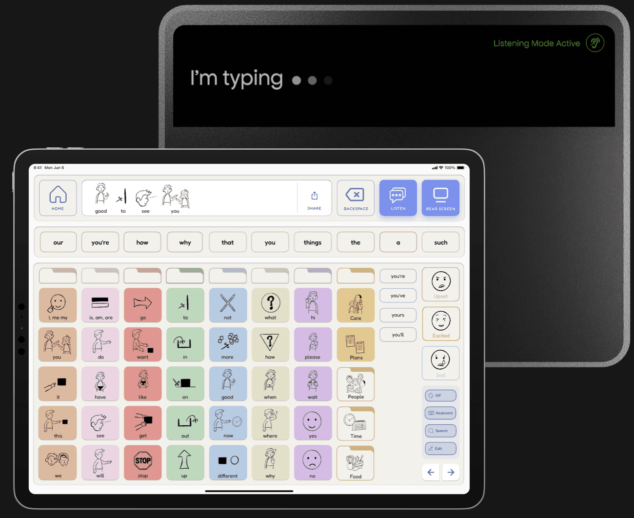 We replaced static symbol grids with adaptive predictive suggestions that learn from usage patterns, reducing taps and helping users form messages faster.